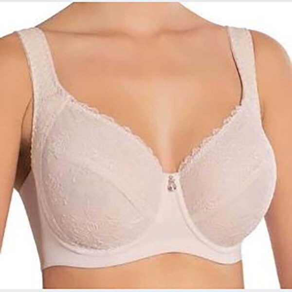 Miseczki biustonosza są miękkie, dlatego jest on bardzo wygody w noszeniu. Dodatkowo miseczki posiadają pomocniczy panel boczny, dlatego biustonosz tak dobrze podtrzymuje nawet obfity biust. Działanie panelu bocznego oczywiście wspomagają fiszbiny klasyczne.